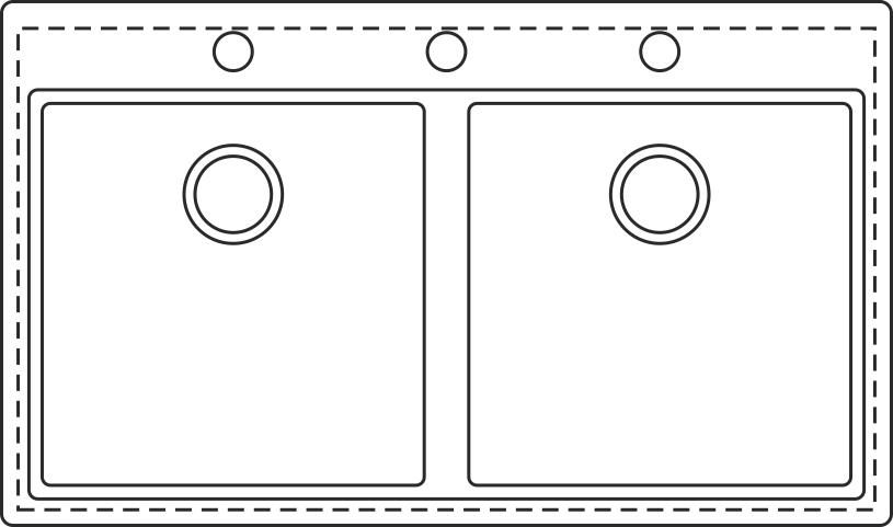 Rozměry se mohou lišit o 5 mm. Síla desky, pro dřezy s odkapávačem, by měla být alespoň 30 mm, vzhledem k výztuhám mezi vanou dřezu a odkapávačem
